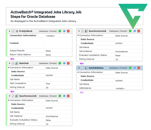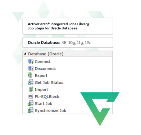 ActiveBatch provides 130 production-ready job steps to enhance your Oracle automation capabilities, resulting in improved service levels and reduced costs.